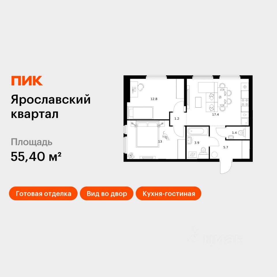 Продаётся 2-комн. квартира площадью 55,4 кв.м на 25 этаже 25 этажного дома (Корпус 2.1, Секция 1) проекта ПИК Ярославский квартал. Светлый просторный подъезд на уровне земли, функциональная планировка, большие окна, c отделкой.
