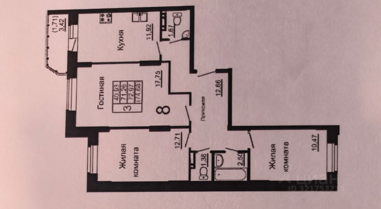 Продаётся трёх комнатная квартира общей площадью 74,0 м.кв. в ЖК "Императорские Мытищи" расположенная по адресу: гор. Мытищи, Тенистый бульвар, д. 10. Квартира без ремонта, что позволит покупателю создать дизайн объекта на свой вкус. Удачная планировка: Квартира Распашонка, три жилые комнаты, все комнаты изолированные площадью 17,75 м.кв., 12,71 м.кв. и 10,47 м.кв., кухня 11,92 м.кв. с выходом на застекленную лоджию. Имеется возможность сделать большую кухню-столовую 29,67 м.кв. В квартире запланированы два раздельных санузла 1,87 м.кв. и 1,38 м.кв. и ванная комната 2,50 м.кв., большой коридор 12,66 м.кв.