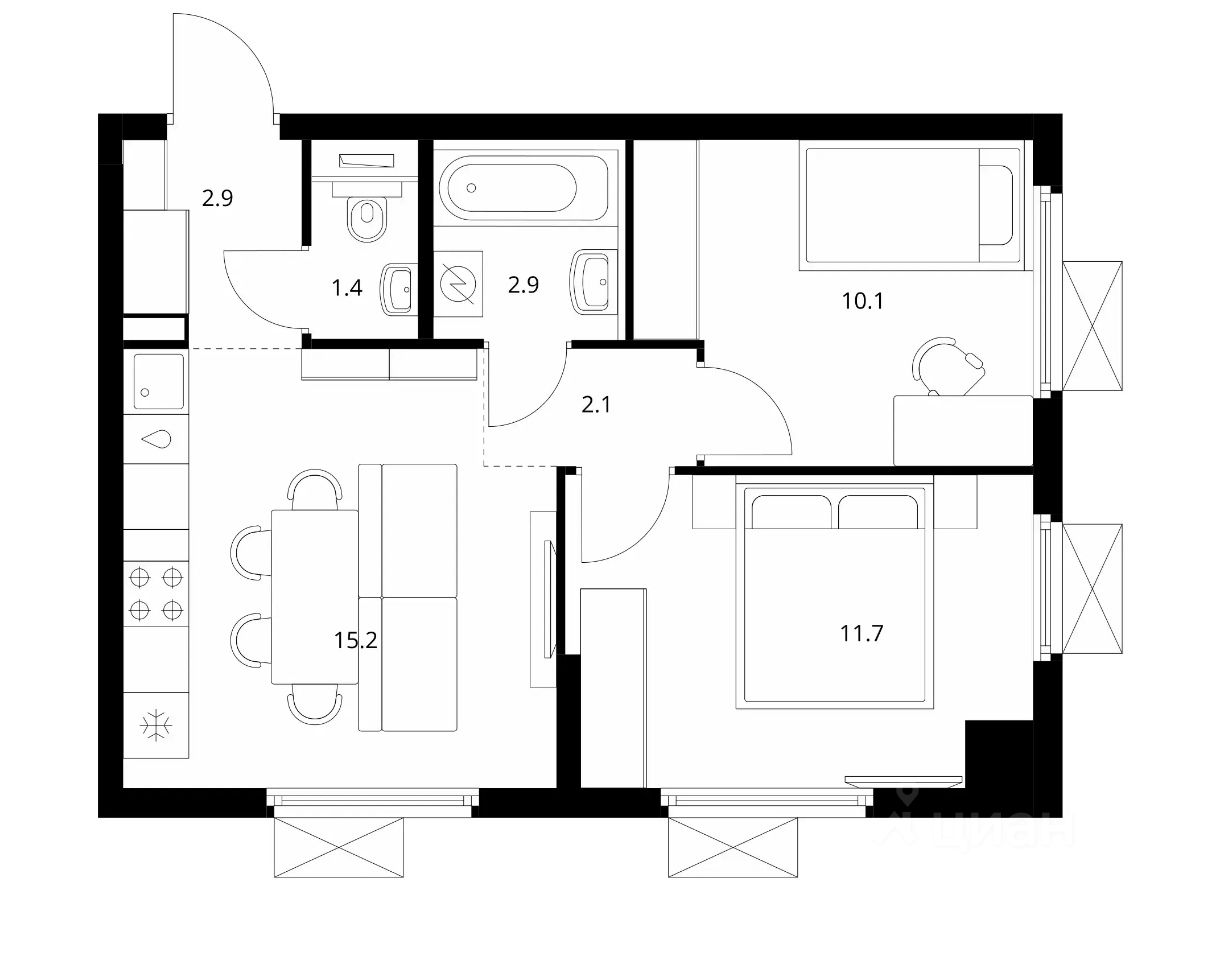 15,2 м²
