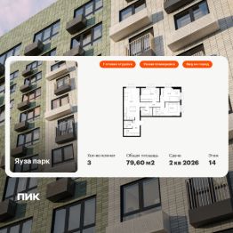 Продаётся 3-комн. квартира площадью 79,6 кв.м на 14 этаже 24 этажного дома (Корпус 6, Секция 1) проекта ПИК Яуза парк. Светлый просторный подъезд на уровне земли, функциональная планировка, большие окна, c отделкой.