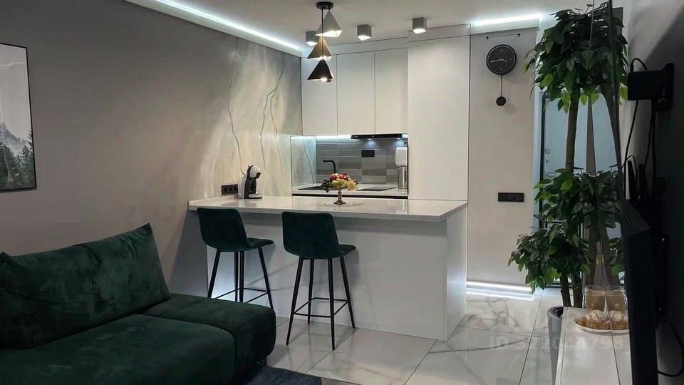 Идеальная планировка, где всему есть свое место:Сердце квартиры — кухня-гостиная 20 кв.м.!Здесь вас ждет не просто простор, а настоящая мечта. *Большой остров*служит и столешницей для готовки, и барной стойкой. Он оборудован вместительными шкафами и встроенной посудомоечной машиной — функциональность и эстетика в идеальном балансе.Уединение и порядок:Вторая комната — полностью изолированная спальня с собственной гардеробной. Главная особенность — прямой выход из спальни в полноценный санузел с большой душевой кабиной, унитазом и раковиной (беде). Это уровень комфорта частных апартаментов!