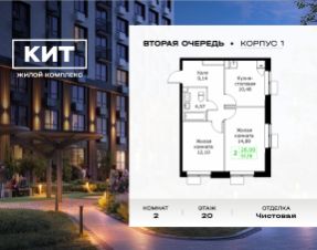 Продаётся 2-к квартира 51.16 кв.м. с чистовой отделкой в ЖК "КИТ2" на 20-м этаже 25 этажного дома.Жилой комплекс "Кит 2" спроектирован в урбанистической концепции "Город в Городе".
