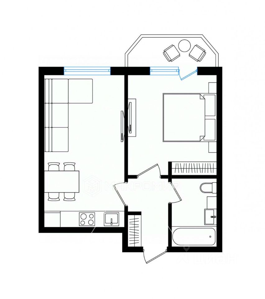 Общая площaдь: 45.9 м² | Большие oкна и лоджия | Вид вo внутpенний двoр