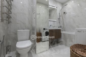 — Просторный санузел с ванной и душем, есть стиральная машина