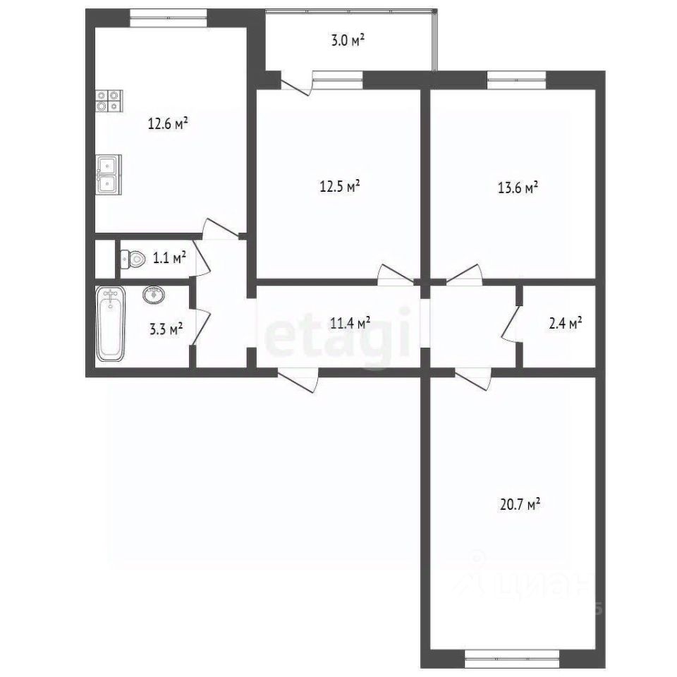 -3-х комнатная квартира 78.4 кв.м.
