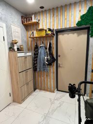 В квартире остается Кухонный гарнитур со встроенной бытовой техникой: варочная панель, холодильник, духовой шкаф, вытяжка, микроволновка, также остается встроенный шкаф в гардеробной, пенал в с/у, обувница.