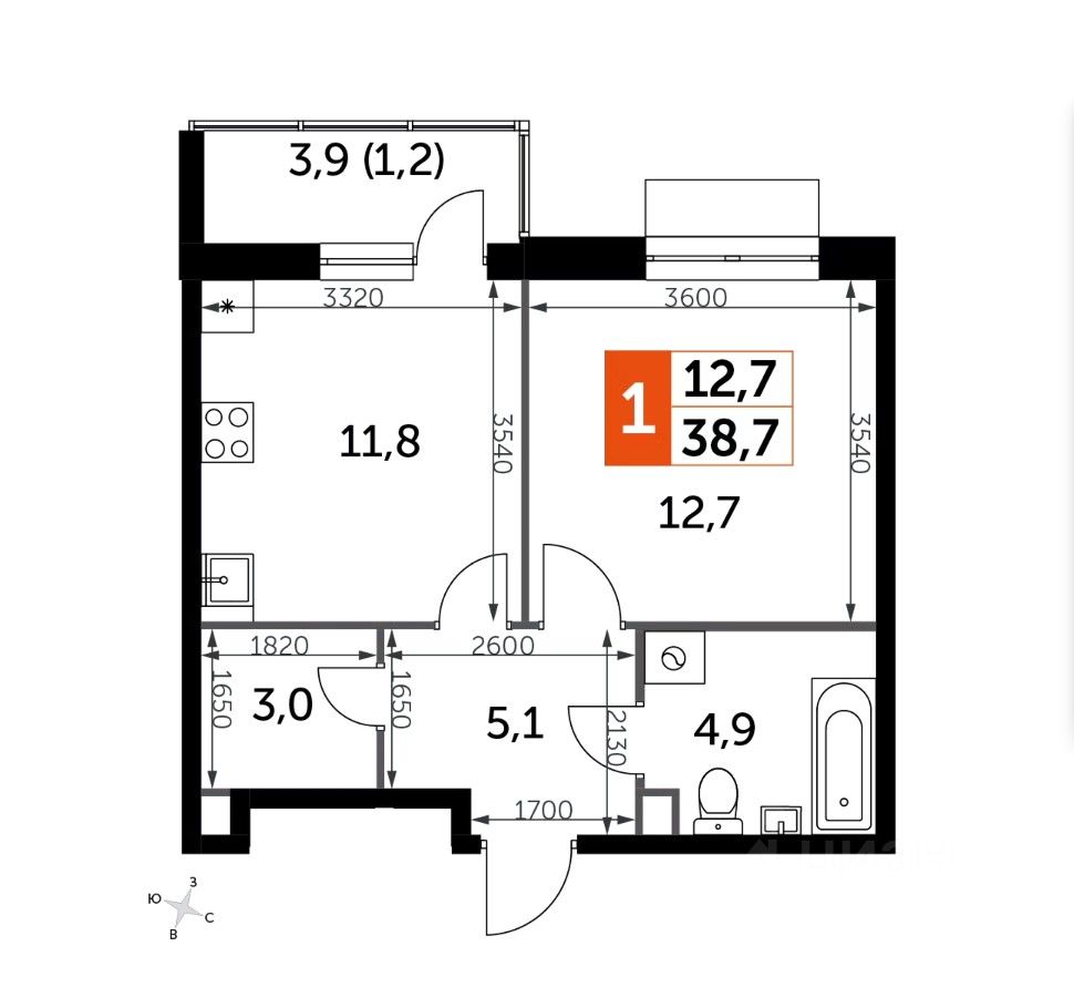 38,6 м²
