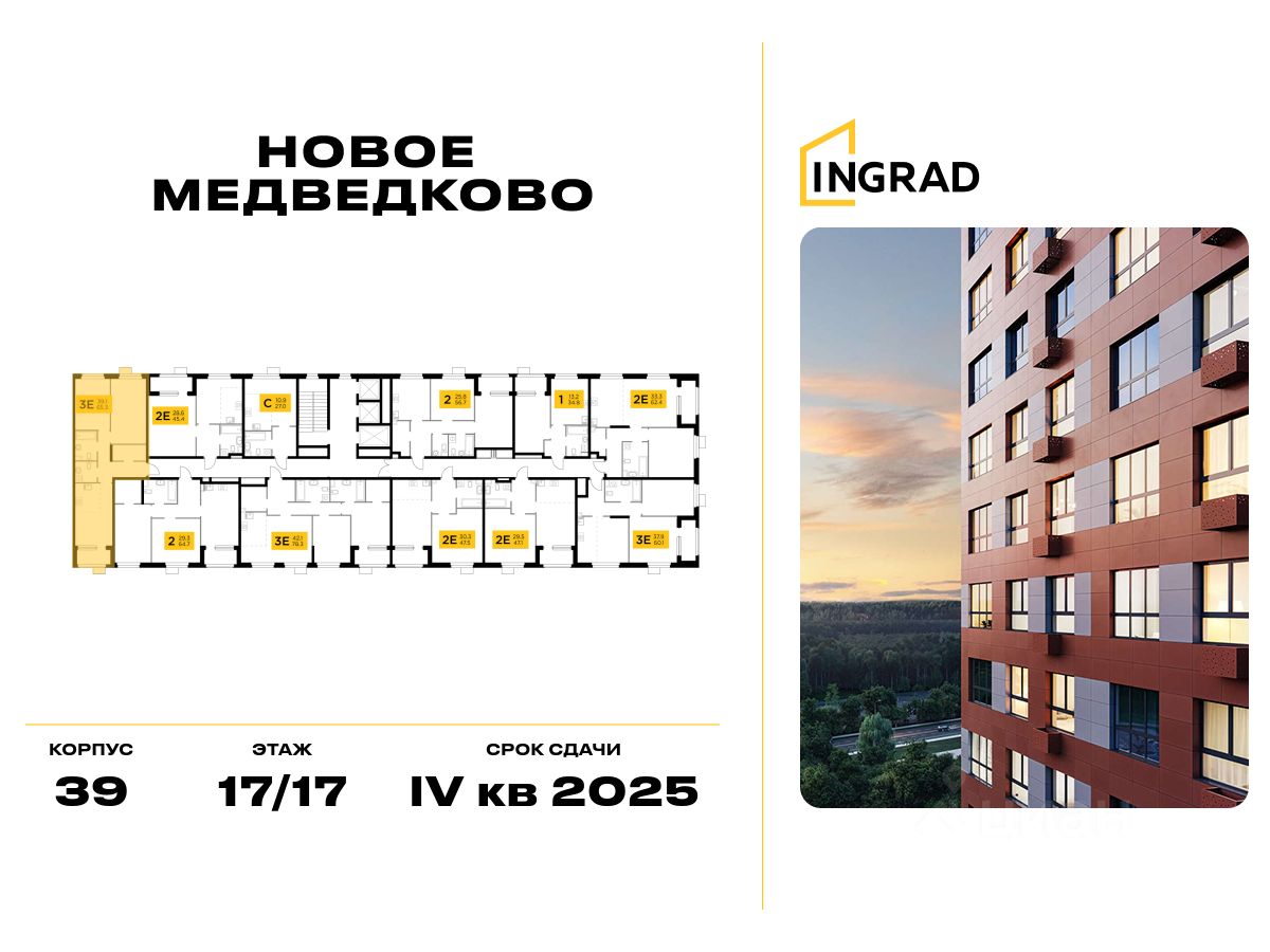 Прямая продажа от застройщика. В жилом квартале, расположенном в северо-западной части города Мытищи, продаётся 2-спальная квартира площадью 65.30 кв.м без отделки. Квартира расположена на 17 этаже 17-этажного дома, корпус 39, в жилом квартале комфорт-класса Новое Медведково (застройщик ГК Инград).