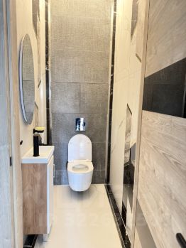 Квартира — двухкомнатная, с авторским дизайнерским ремонтом, в котором смелое смешение стилей и материалов превращает пространство в живое и выразительное. Два санузла — гостевой и хозяйский — оформлены с вниманием к деталям и оснащены сантехникой Grohe, в хозяйском санузле есть мини спа зона с изливом. Компактная, но функциональная кухня с каменной столешницей оборудована всей необходимой техникой: варочная панель, посудомоечная машина, холодильник и стиральная машина.