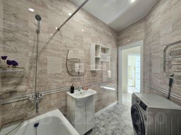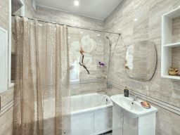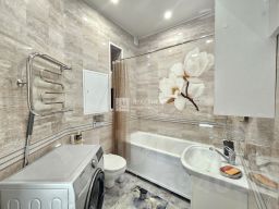 Все комнаты изолированы, санузел совмещенный, есть застекленный балкон, натяжные потолки, высота - 2,85 м, на полу качественный ламинат, на стенах - обои под покраску. Вся проводка и разводка сантехники новая - ремонт выполнен в 2024 году.