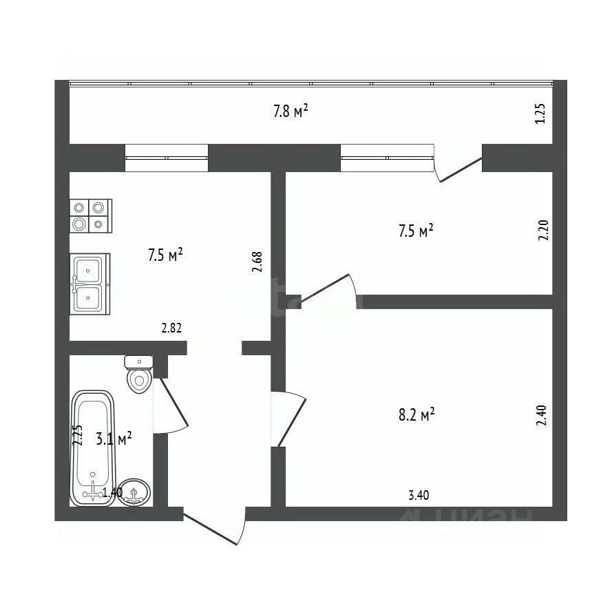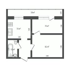 Общая площадь 41 кв.м (c учетом утепленной лоджии). 2 небольшие комнаты.