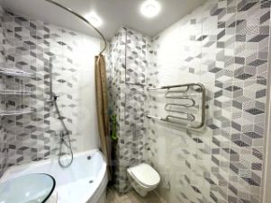 Большим плюсом квартиры является наличие ремонта вы можете сразу заехать и жить. Просторная, светлая кухня-гостиная 19 кв.м, с кондиционером и полностью укомплектованной кухней с посудомойкой. Уютная спальня 10 кв. м. с выходом на застекленную лоджию. Просторный санузел с полноценной ванной, водонагревателем на период отключения горячей воды и системой защиты от протечек воды.