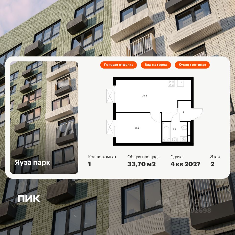 Продаётся 1-комн. квартира площадью 33,7 кв.м на 2 этаже 24 этажного дома (Корпус 7, Секция 1) проекта ПИК Яуза парк. Светлый просторный подъезд на уровне земли, функциональная планировка, большие окна, c отделкой.