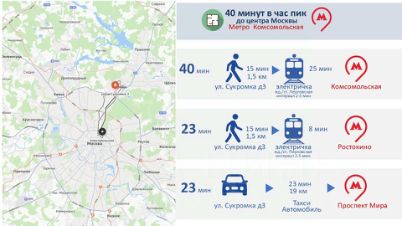 40 минут до центра Москвы (метро проспект Мира) в час пик.