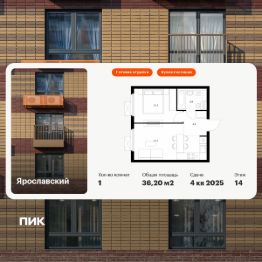 Продаётся 1-комн. квартира площадью 36,2 кв.м на 14 этаже 25 этажного дома (Корпус 16.1, Секция 1) проекта ПИК Ярославский. Светлый просторный подъезд на уровне земли, функциональная планировка, большие окна, c отделкой.