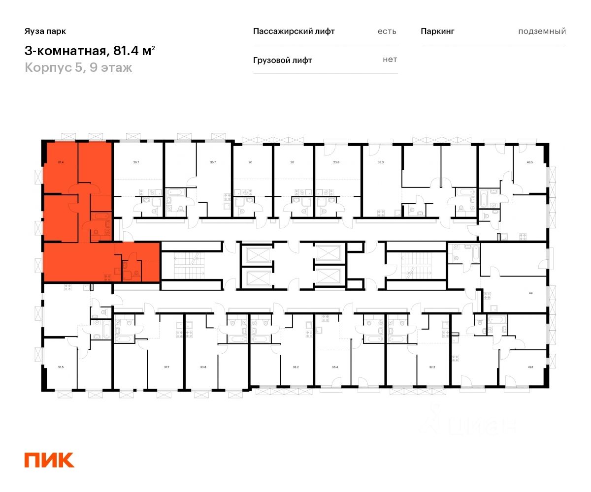 Продаётся 3-комн. квартира площадью 81,4 кв.м на 9 этаже 24 этажного дома (Корпус 5, Секция 1) проекта ПИК Яуза парк. Светлый просторный подъезд на уровне земли, функциональная планировка, большие окна, c отделкой.