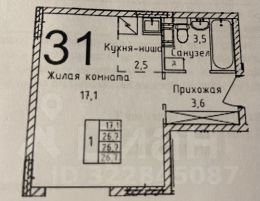 Общая площадь 26,7 кв.м. Квартира без ремонта (возможность сделать все под себя). Окно во двор.
