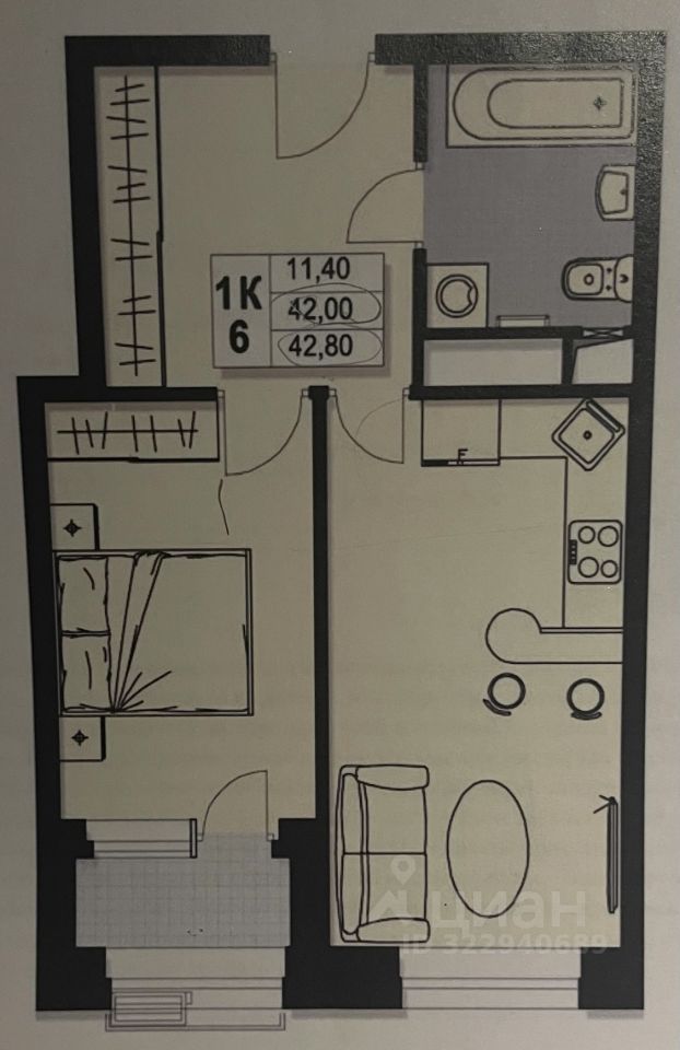 АГЕНТАМ НЕ ЗВОНИТЬ! Продажа от собственника! Если хотите посмотреть, то пишите сообщение! Продается просторная квартира с общей площадью 42 кв. м в новом современном доме 2022 года постройки. Квартира находится на 15 этаже 17-этажного монолитно-кирпичного дома. Высокие потолки (3 метра) и свободная планировка позволяют создать интерьер по вашему вкусу.