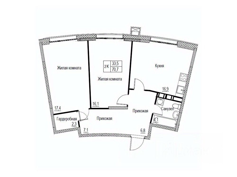 Лучшая планировка в ЖК, последняя в продаже. Классическая двухкомнатная квартира: