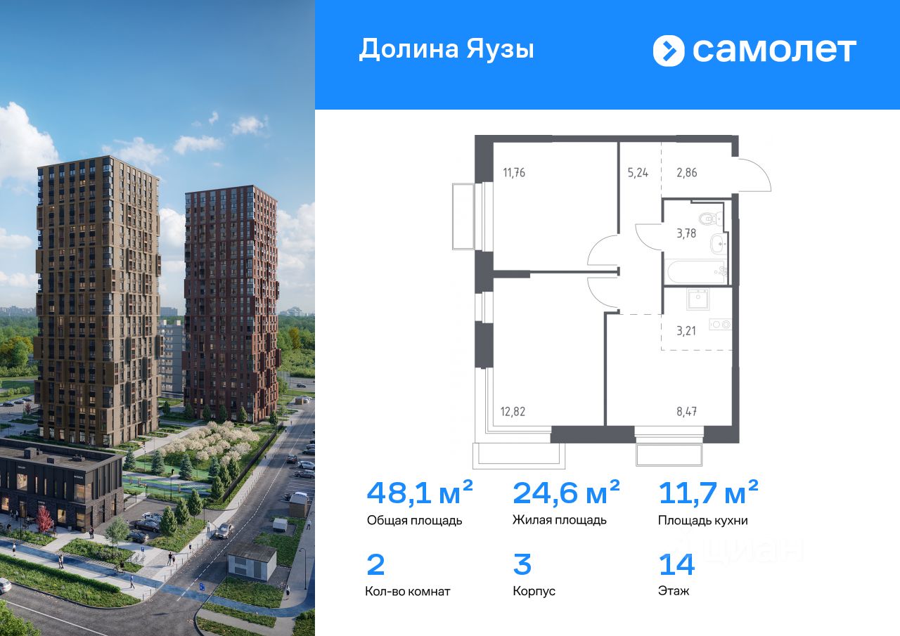 Строим кварталы для жизни с заботой о будущем. Предлагается 2-комнатная квартира комфорт-класса 48,14 кв.м в корпусе 3 на 14 этаже, в ЖК "Долина Яузы"