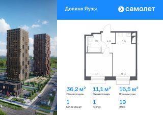 Строим кварталы для жизни с заботой о будущем. Предлагается 1-комнатная квартира комфорт-класса 36,21 кв.м в корпусе 1 на 19 этаже, в ЖК "Долина Яузы"