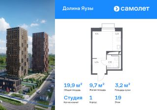 Строим кварталы для жизни с заботой о будущем. Предлагается квартира студия комфорт-класса 19,93 кв.м в корпусе 1 на 19 этаже, в ЖК "Долина Яузы"