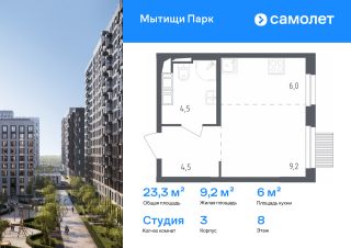 Строим кварталы для жизни с заботой о будущем. Предлагается квартира студия комфорт-класса 23,3 кв.м в корпусе 3 на 8 этаже, в ЖК "Мытищи Парк"