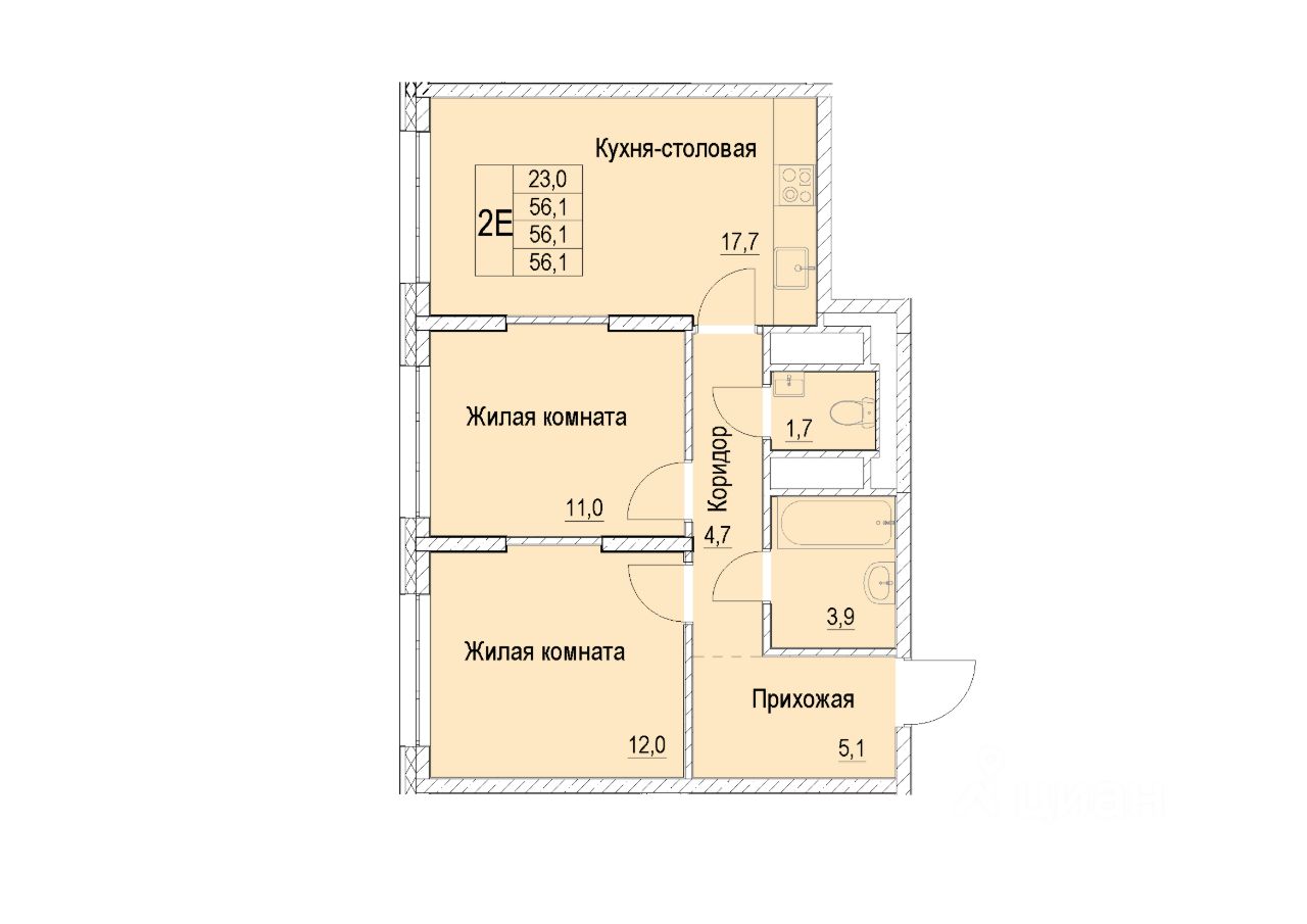 Общая площадь56,1 м²