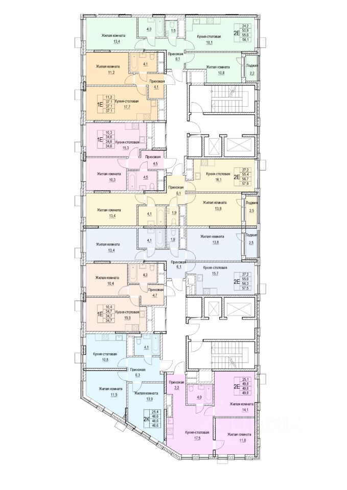 Продаётся 2-комнатная квартира в строящемся доме (Корпус 2), срок сдачи: II квартал 2027 года, общей площадью 46.6 кв.м, на 9 этаже.