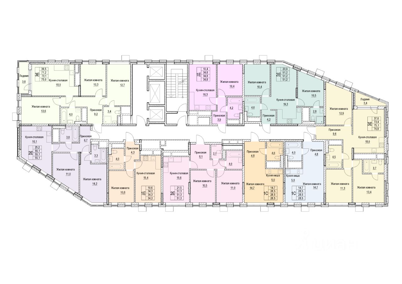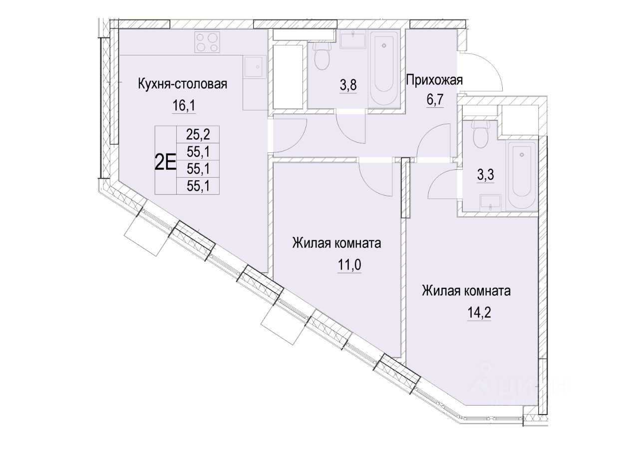 Продаётся 2-комнатная квартира в строящемся доме (Корпус 2), срок сдачи: II квартал 2027 года, общей площадью 55.1 кв.м, на 3 этаже.