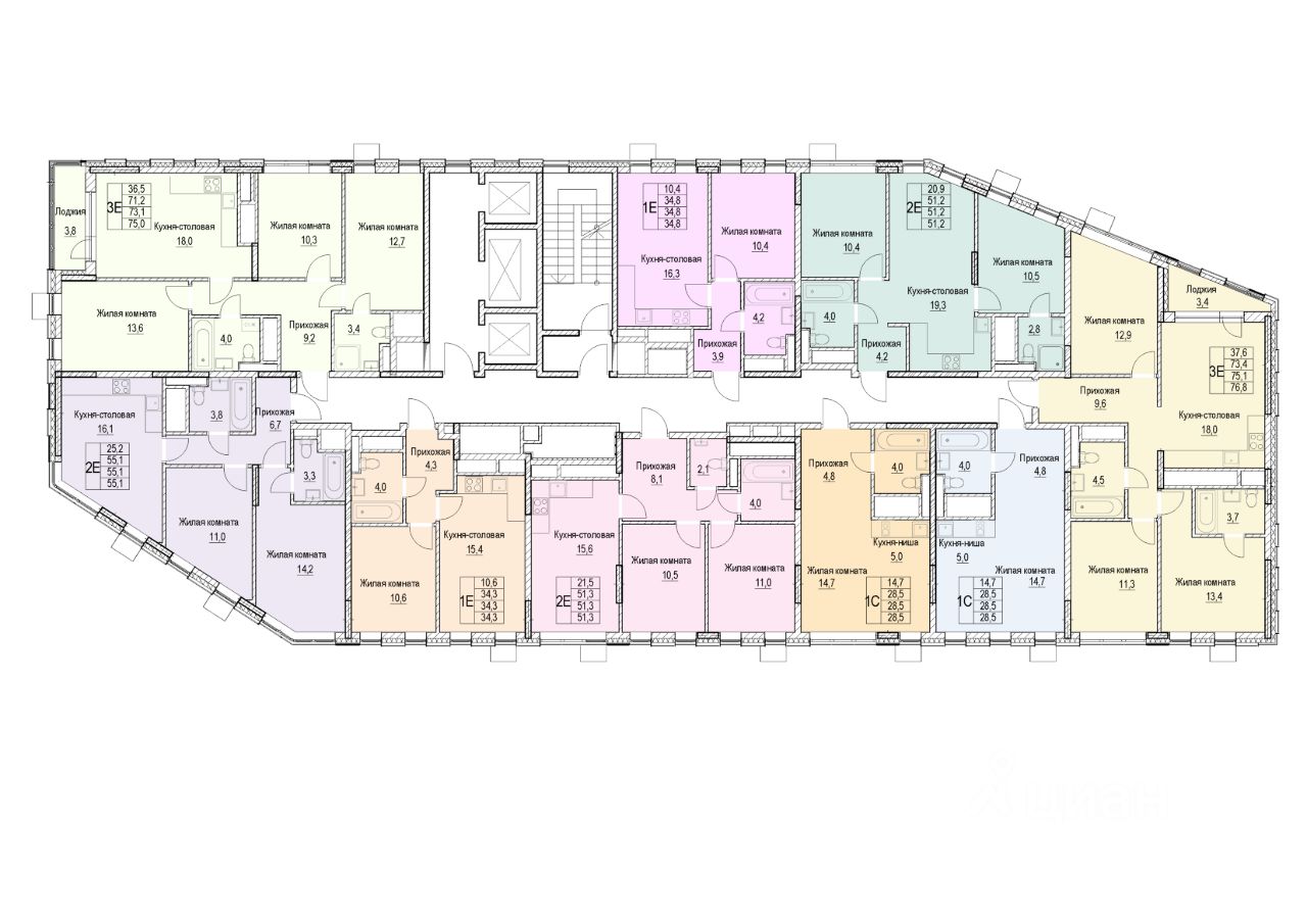 Продаётся 2-комнатная квартира в строящемся доме (Корпус 2), срок сдачи: II квартал 2027 года, общей площадью 55.1 кв.м, на 10 этаже.