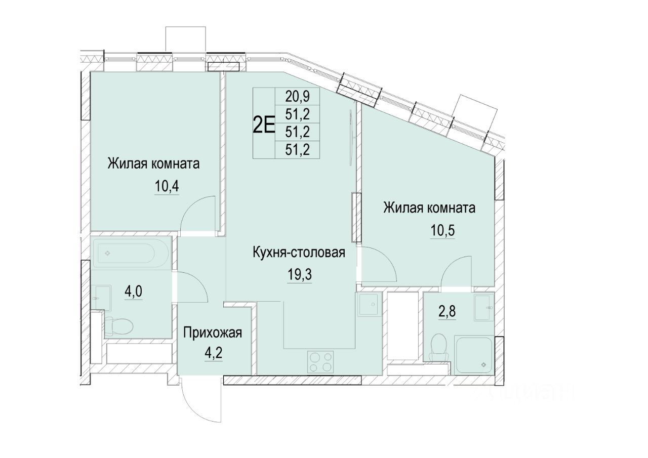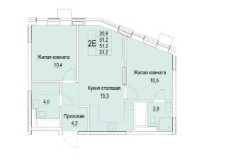 Продаётся 2-комнатная квартира в строящемся доме (Корпус 2), срок сдачи: II квартал 2027 года, общей площадью 51.2 кв.м, на 13 этаже.