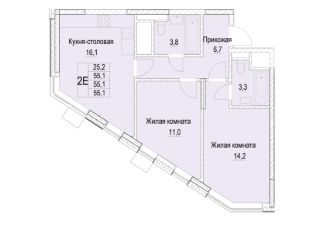 Продаётся 2-комнатная квартира в строящемся доме (Корпус 2), срок сдачи: II квартал 2027 года, общей площадью 55.1 кв.м, на 13 этаже.