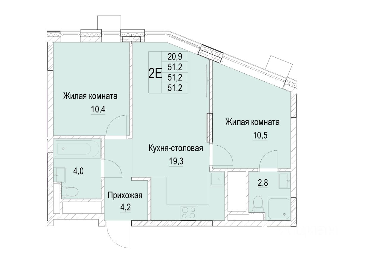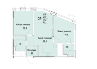 Продаётся 2-комнатная квартира в строящемся доме (Корпус 2), срок сдачи: II квартал 2027 года, общей площадью 51.2 кв.м, на 16 этаже.