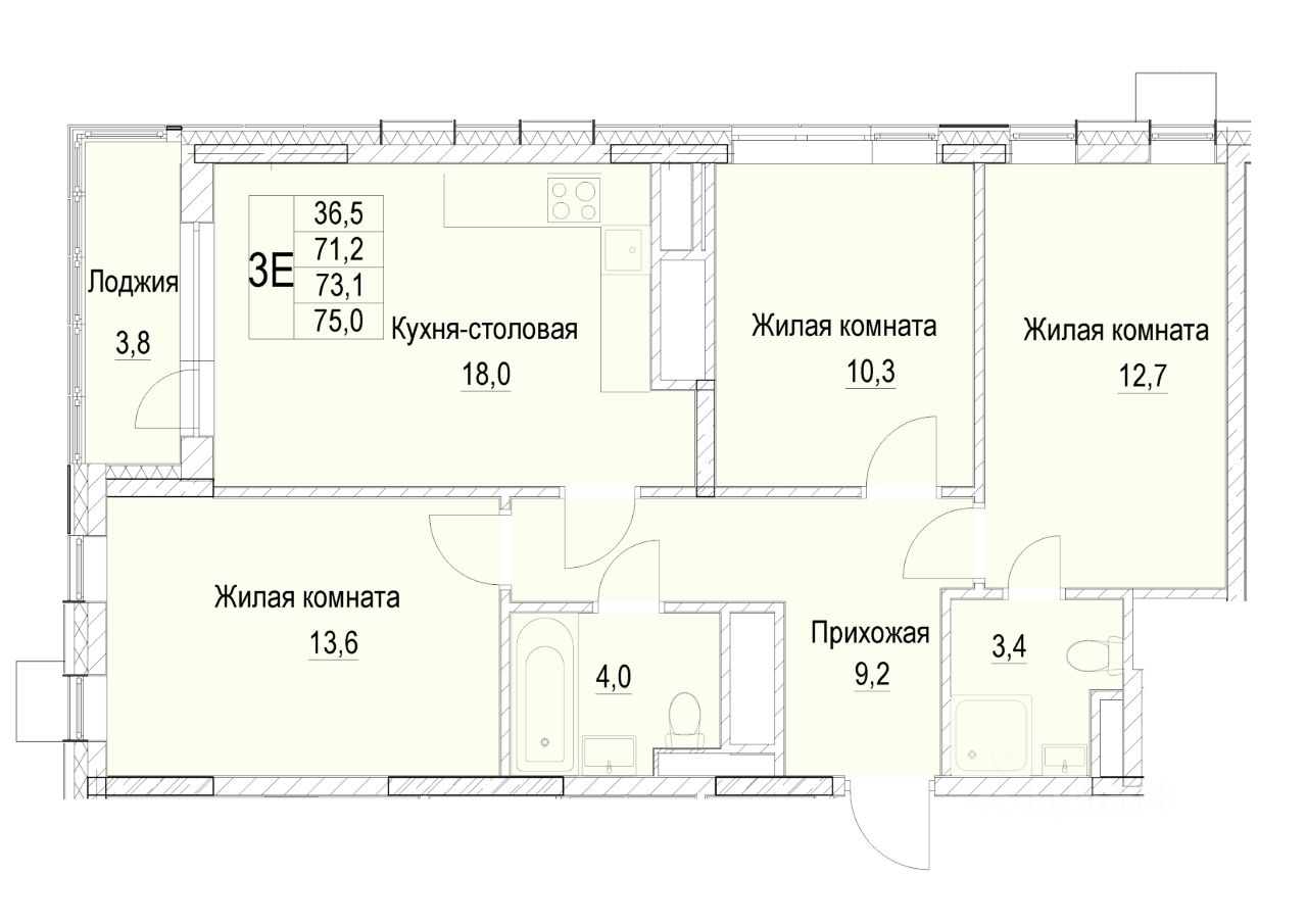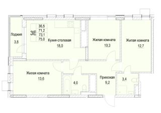 Продаётся 3-комнатная квартира в строящемся доме (Корпус 2), срок сдачи: II квартал 2027 года, общей площадью 73.1 кв.м, на 16 этаже.