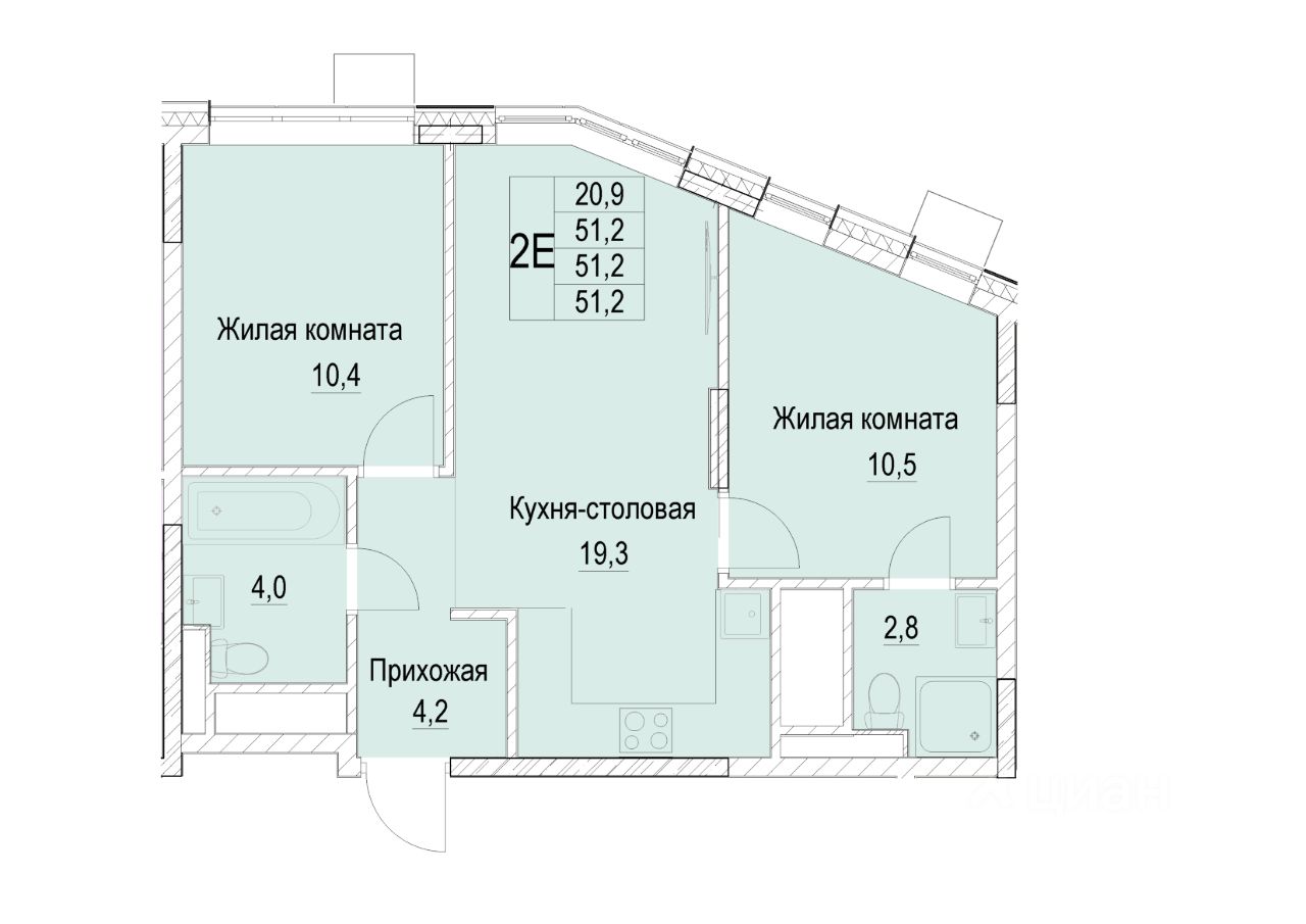 Продаётся 2-комнатная квартира в строящемся доме (Корпус 2), срок сдачи: II квартал 2027 года, общей площадью 51.2 кв.м, на 17 этаже.