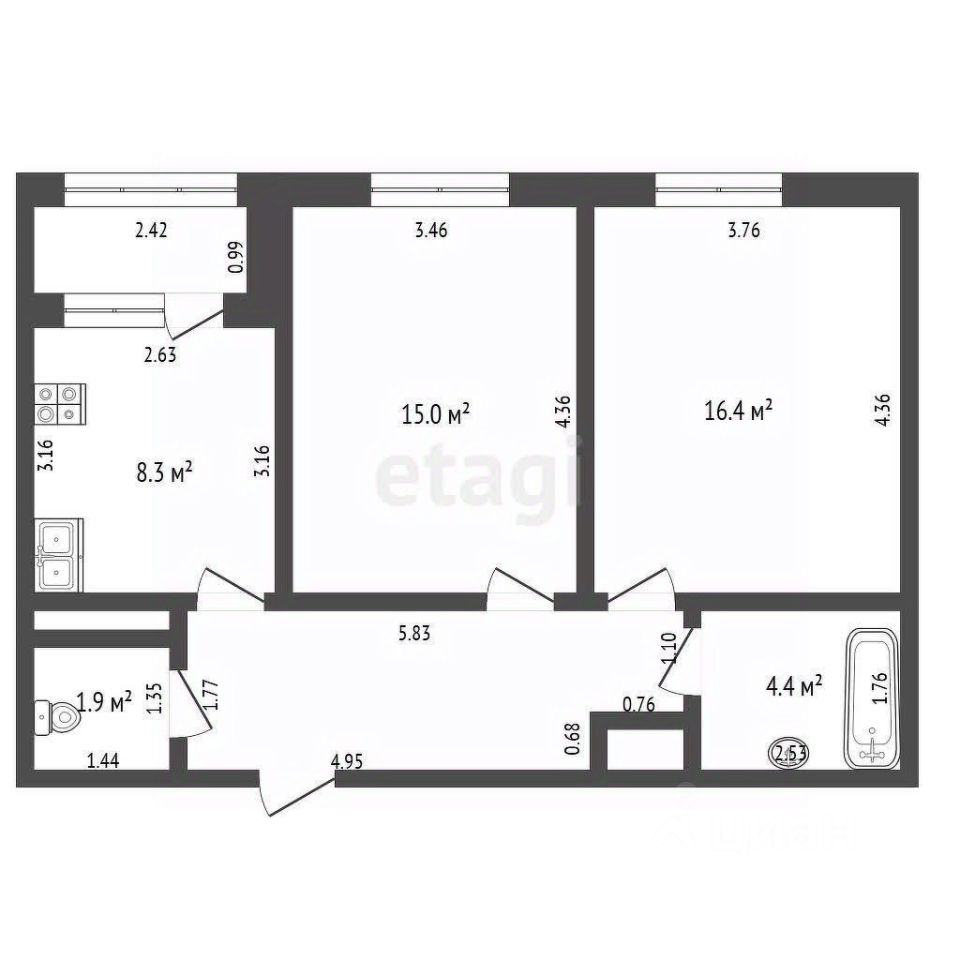 Две жилые комнаты правильной формы и практически одинаковой площади.