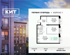 Продаётся 2-к квартира 60.2 кв.м. с чистовой отделкой в ЖК "КИТ" на 21-м этаже 25 этажного дома.
