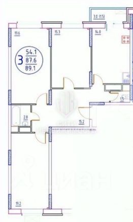 Общая площадь квартиры 87,5 кв.м., комнаты все изолированные (19,2-19,6-15,3) кв.м., кухня 14 кв.м. , просторная прихожая 15 кв.м. с застекленной лоджией (смотрите фото)