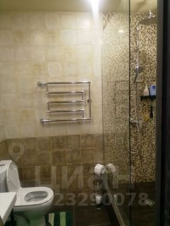 В спальной зоне подиум с огромным местом для хранения, в ванной - душевой отсек со стеклянной шторой.