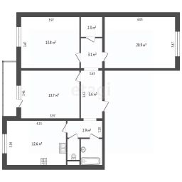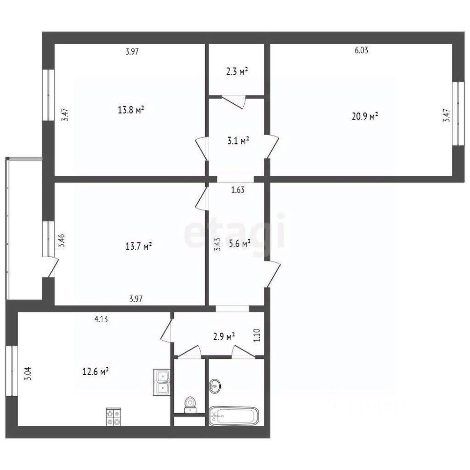 12,6 м²