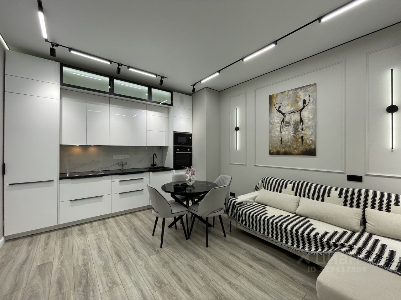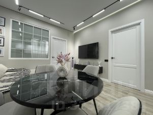 - В цену квартиры входит следующая мебель от известных брендов: стол раздвижной стеклянный оникс, мягкие стулья дизайнерские, стеклянная тумба под телевизор, диван угловой, картина написанная маслом, кровать с анатомическим матрасом и подъемным, подвесные прикроватные тумбы, интерьерное зеркало, большой шкаф.