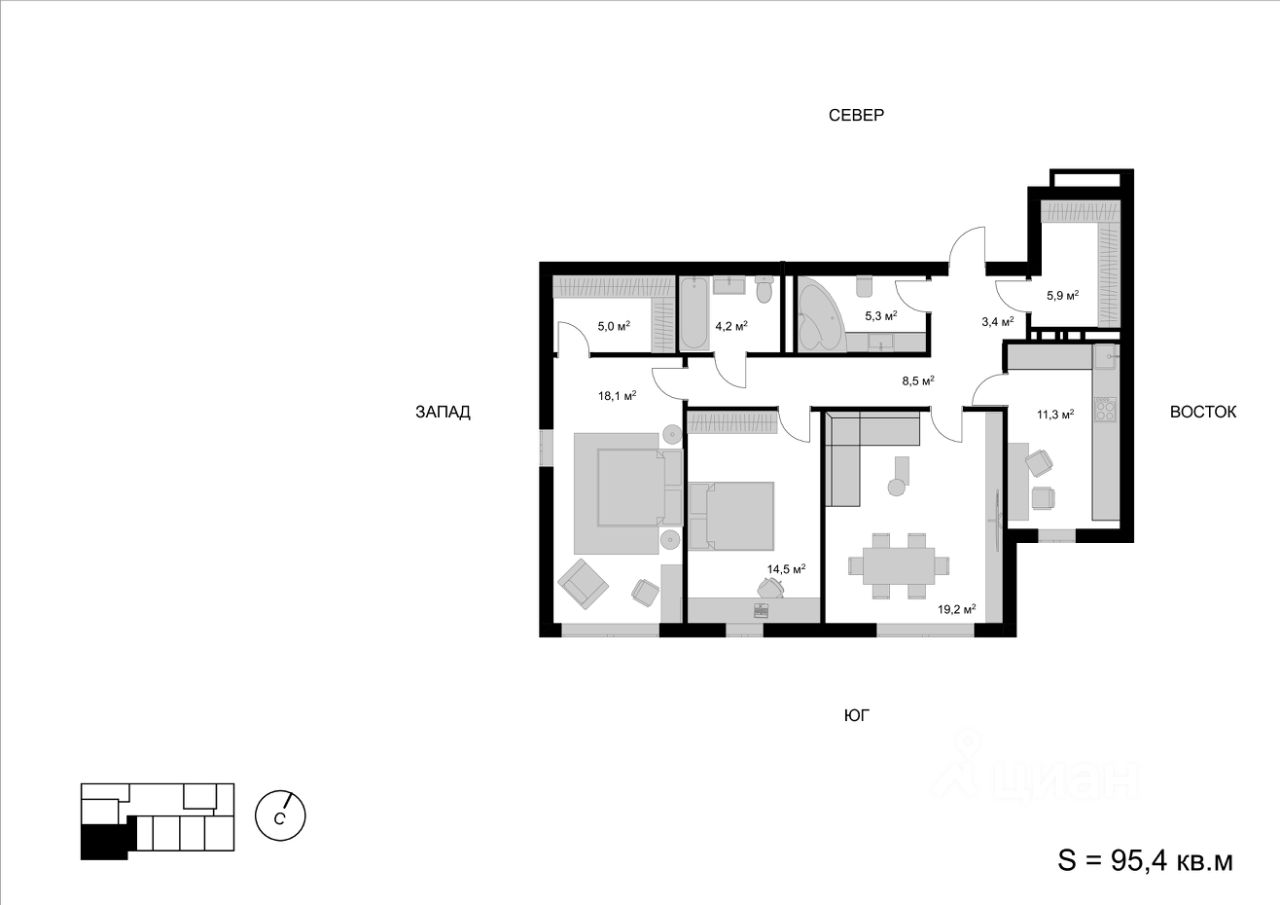 Продаётся 3-комнатная квартира в строящемся доме (Корпус 1), срок сдачи: I-кв. 2026, общей площадью 95.4 кв.м., на 3 этаже. Многоквартирный жилой дом со встроенно-пристроенными нежилыми помещениями и автостоянкой