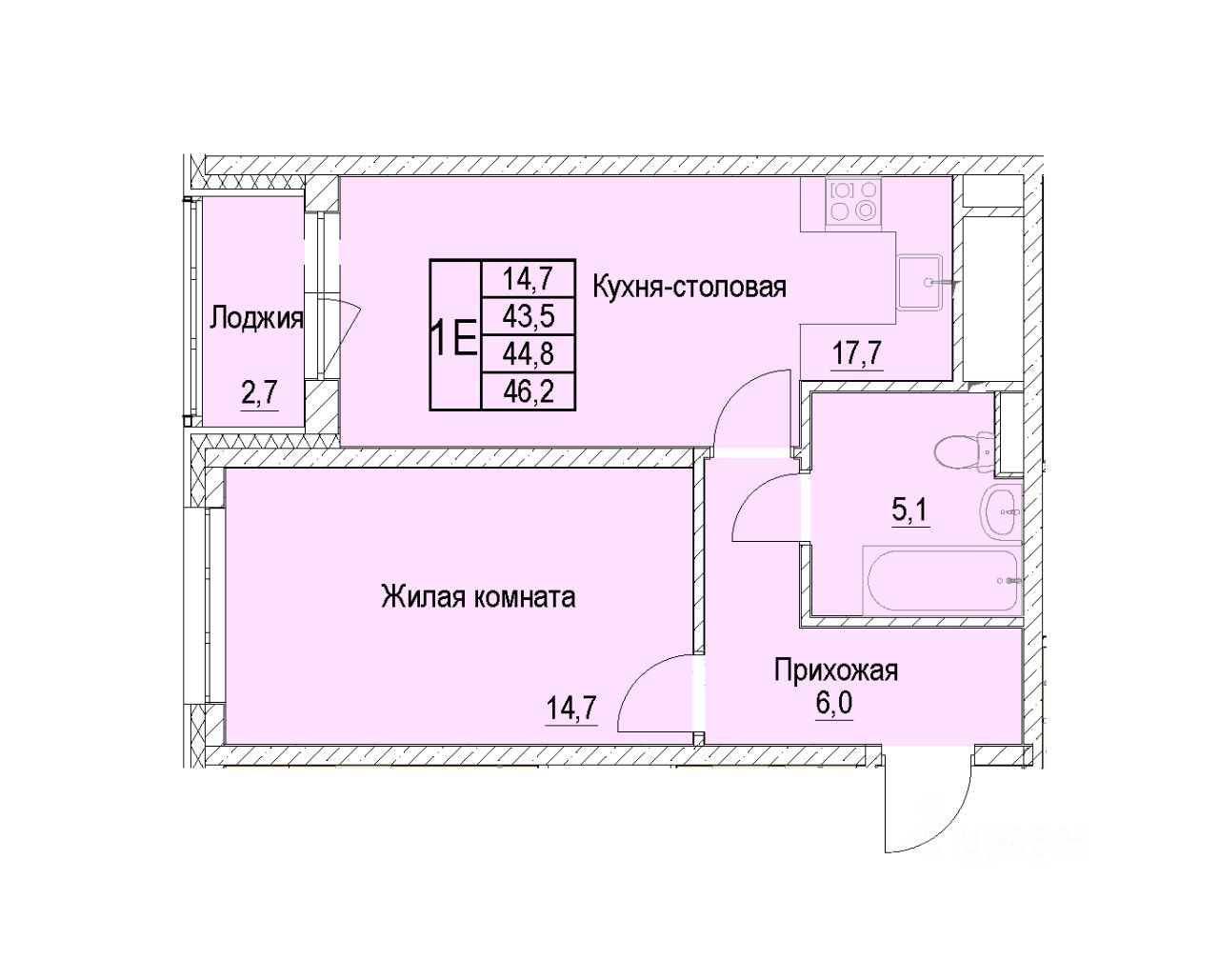 Общая площадь44,8 м²