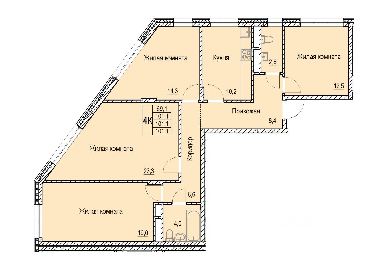 Продаётся 4-комнатная квартира в строящемся доме (Корпус 5), срок сдачи: III квартал 2027 года.