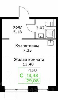 Продается видовая студия с двумя окнами, на 17 этаже, общей площадью 29,08 в ЖК бизнес-класса Кит 2