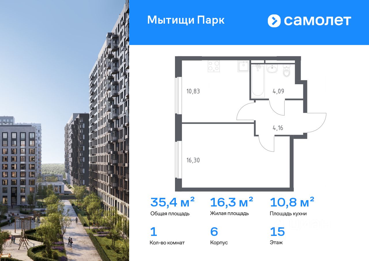 Строим кварталы для жизни с заботой о будущем. Предлагается 1-комнатная квартира комфорт-класса 35,38 кв.м в корпусе 6 на 15 этаже, в ЖК "Мытищи Парк"