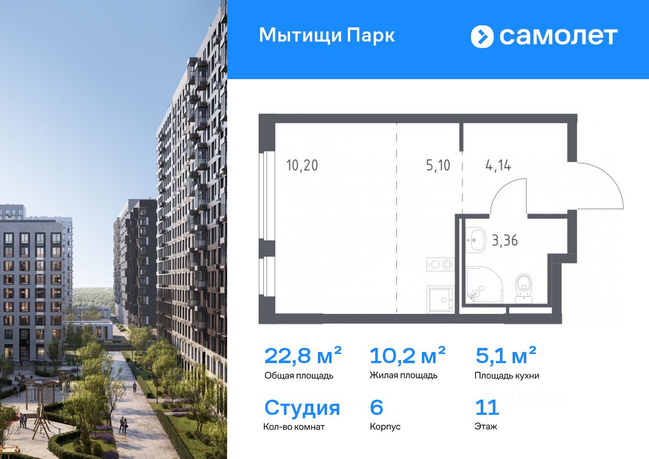 Строим кварталы для жизни с заботой о будущем. Предлагается квартира студия комфорт-класса 22,8 кв.м в корпусе 6 на 11 этаже, в ЖК "Мытищи Парк"
