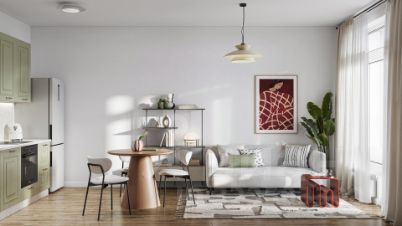 Квартира без отделки. Доступность опции "отделка" и возможность комплектации мебелью и декором уточняйте у застройщика.