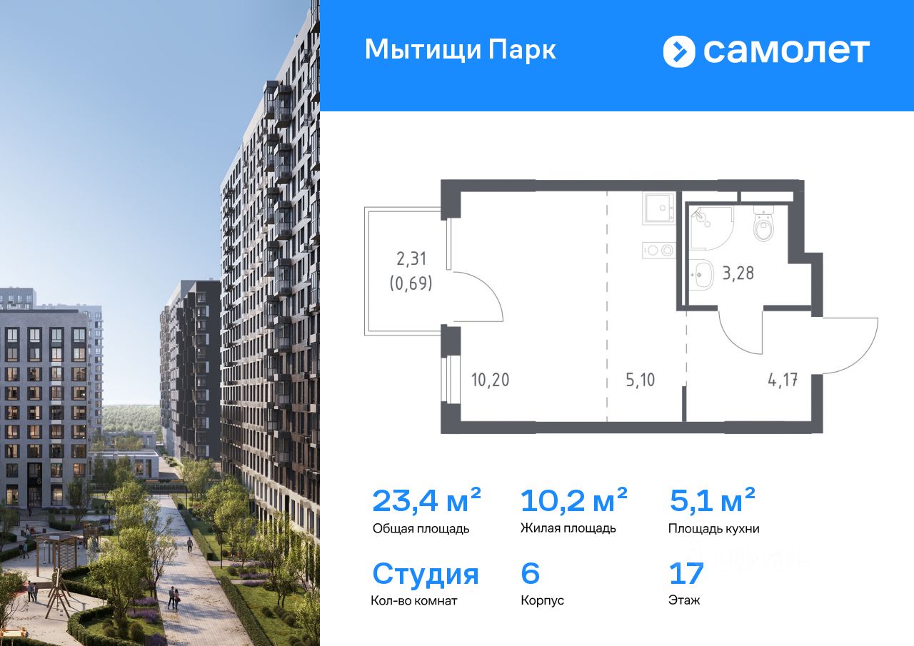 Строим кварталы для жизни с заботой о будущем. Предлагается квартира студия комфорт-класса 23,44 кв.м в корпусе 6 на 17 этаже, в ЖК "Мытищи Парк"